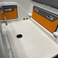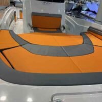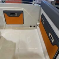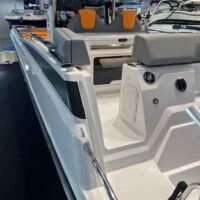 Ce modèle est doté d’une coque en fibre de verre, garantissant à la fois robustesse et légèreté. Avec un poids à vide de 1 600 kg, il peut accueillir jusqu’à 10 personnes, ce qui le rend idéal pour des sorties en famille ou entre amis. Son réservoir de carburant de 350 litres assure une autonomie suffisante pour de longues escapades en mer.