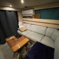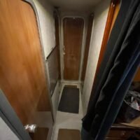 Dans la première chambre, on trouve un chauffage et un support pour écran. Elle dispose d’une salle de bain avec une colonne de douche et un lave-linge type camping-car. Les toilettes sont équipées d’un sanibroyeur. La chambre principale bénéficie d’un chauffage radiant.