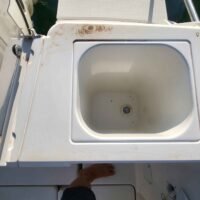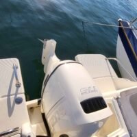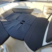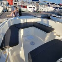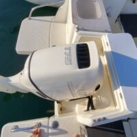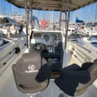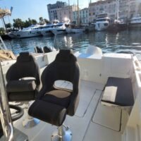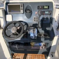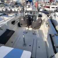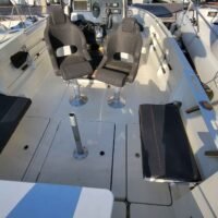 Cockpit auto-vidant, Console centrale, siège pilote et co-pilote réglables et pivotants, portillon AR, compas, douche de cockpit (avec réservoir 40L), douche de pont, rouleau d’étrave, rangement pour cannes dans les francs bords, réservoir de carburant 140L, réservoir d’eau 40L, feux de navigation, feux blanc, échelle de bain, batterie, pompe de direction +volant, pompe à eau, pompe de cale automatique, Pompe de cale manuel, vérin de direction hydraulique.