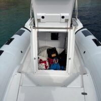 Le Ranieri Cayman Sport Touring 23 présente des dimensions remarquables, avec une longueur de 7,00 m et une largeur de 2,80 m. Cette conception généreuse assure une espace spacieuse pour accueillir vos amis et votre famille à bord. Son réservoir de carburant intégré d’une capacité d’environ 300 L vous permet de naviguer des heures sans souci, tandis que le réservoir d’eau douce, équipé d’une douchette et d’un évier, garantit un confort optimal durant vos sorties.